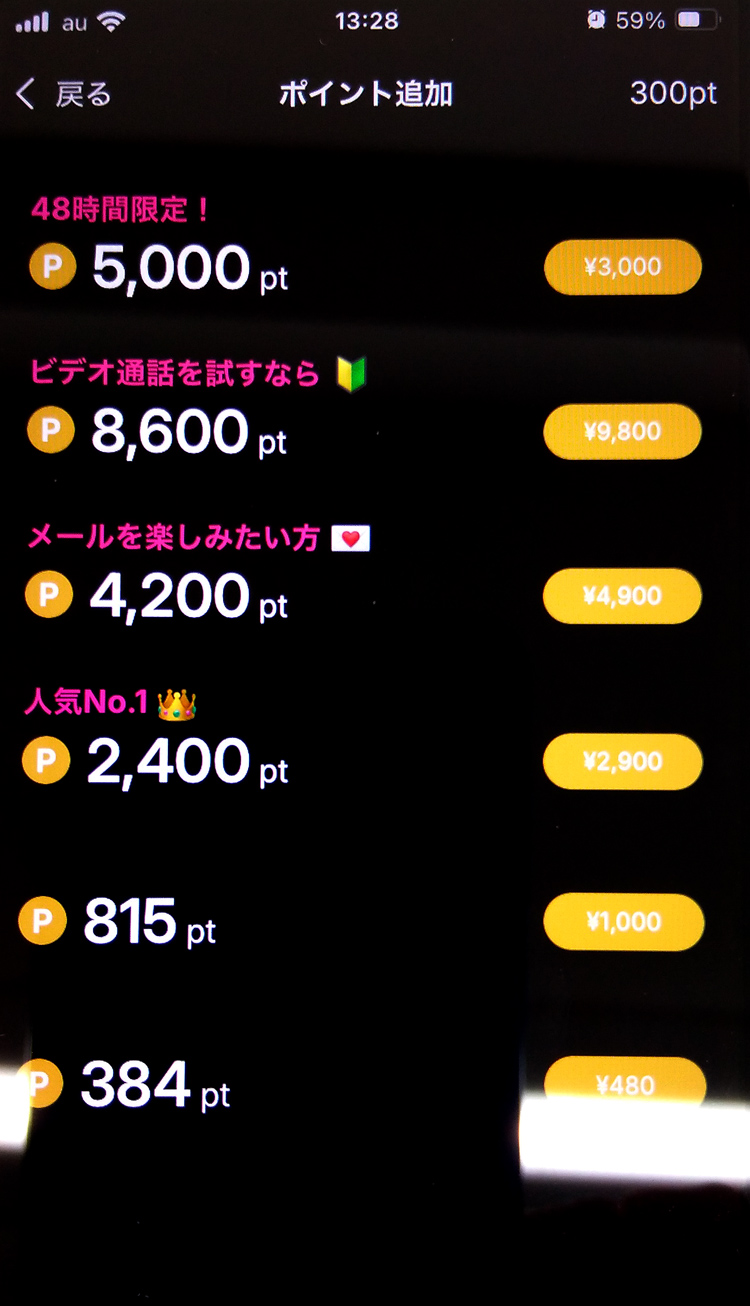 ポイントの消費はビデオ通話280pt/分となっているので、ビデオ通話は1分ほど利用できます。