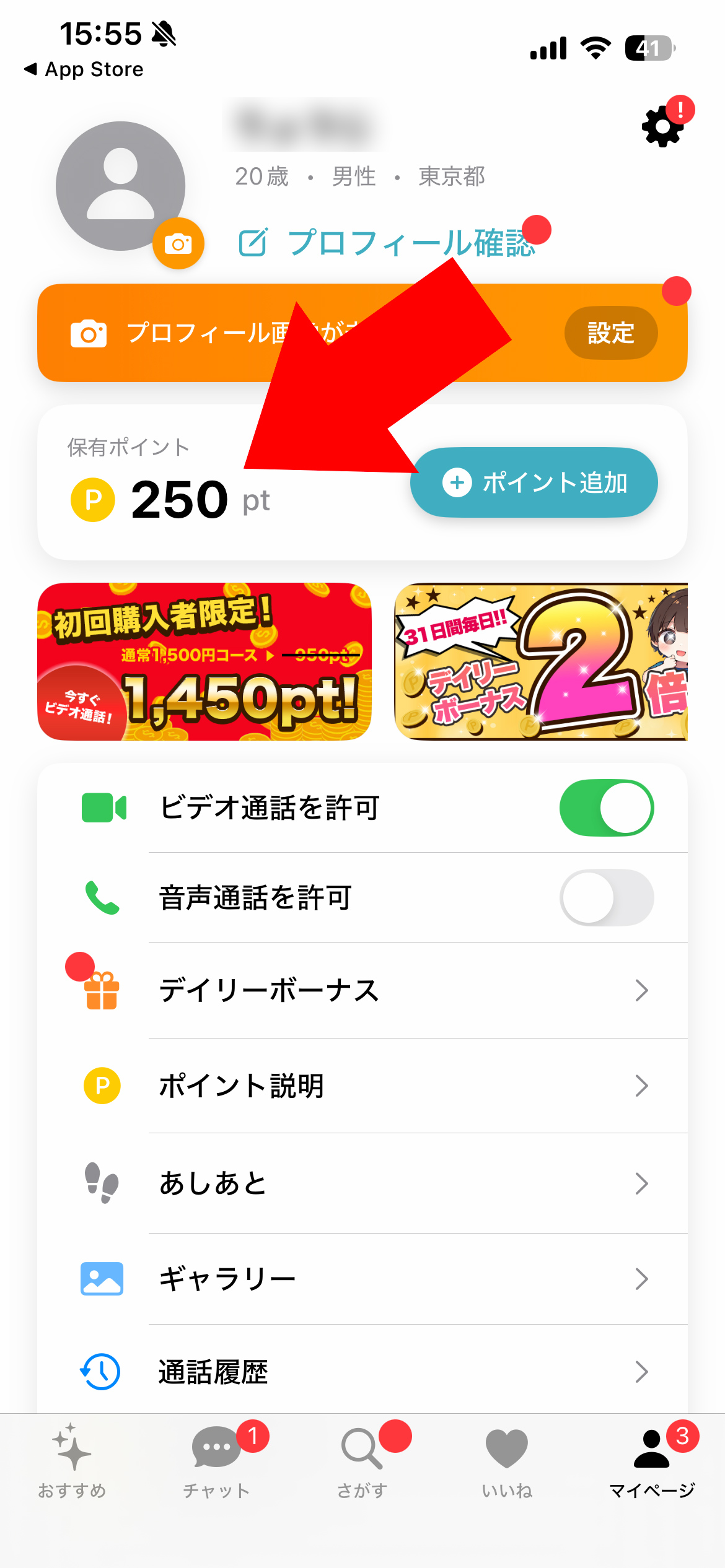 あと1ポイントはプロフィール写真の設定でゲットすることができます。