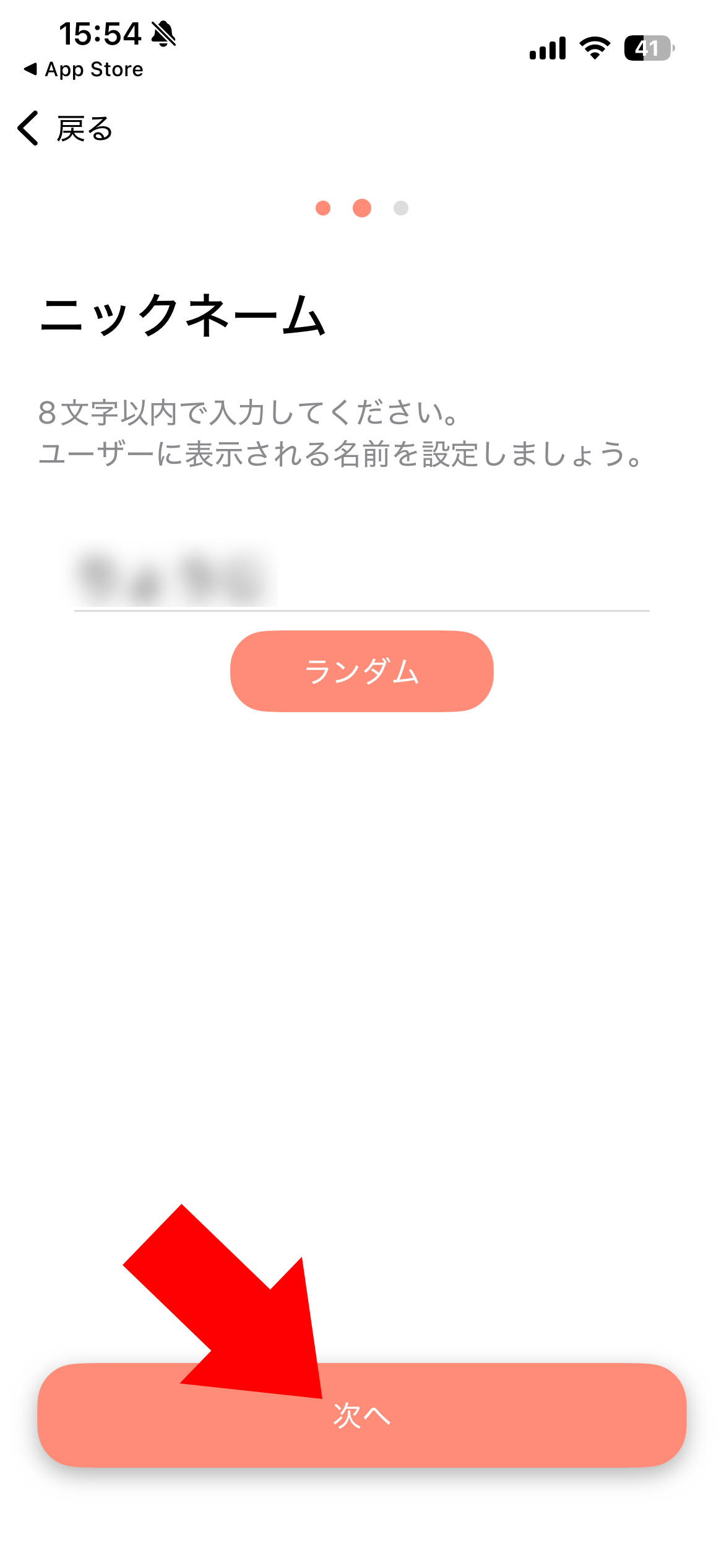 ※ランダムボタンを押すとニックネームを適当につけてくれます。